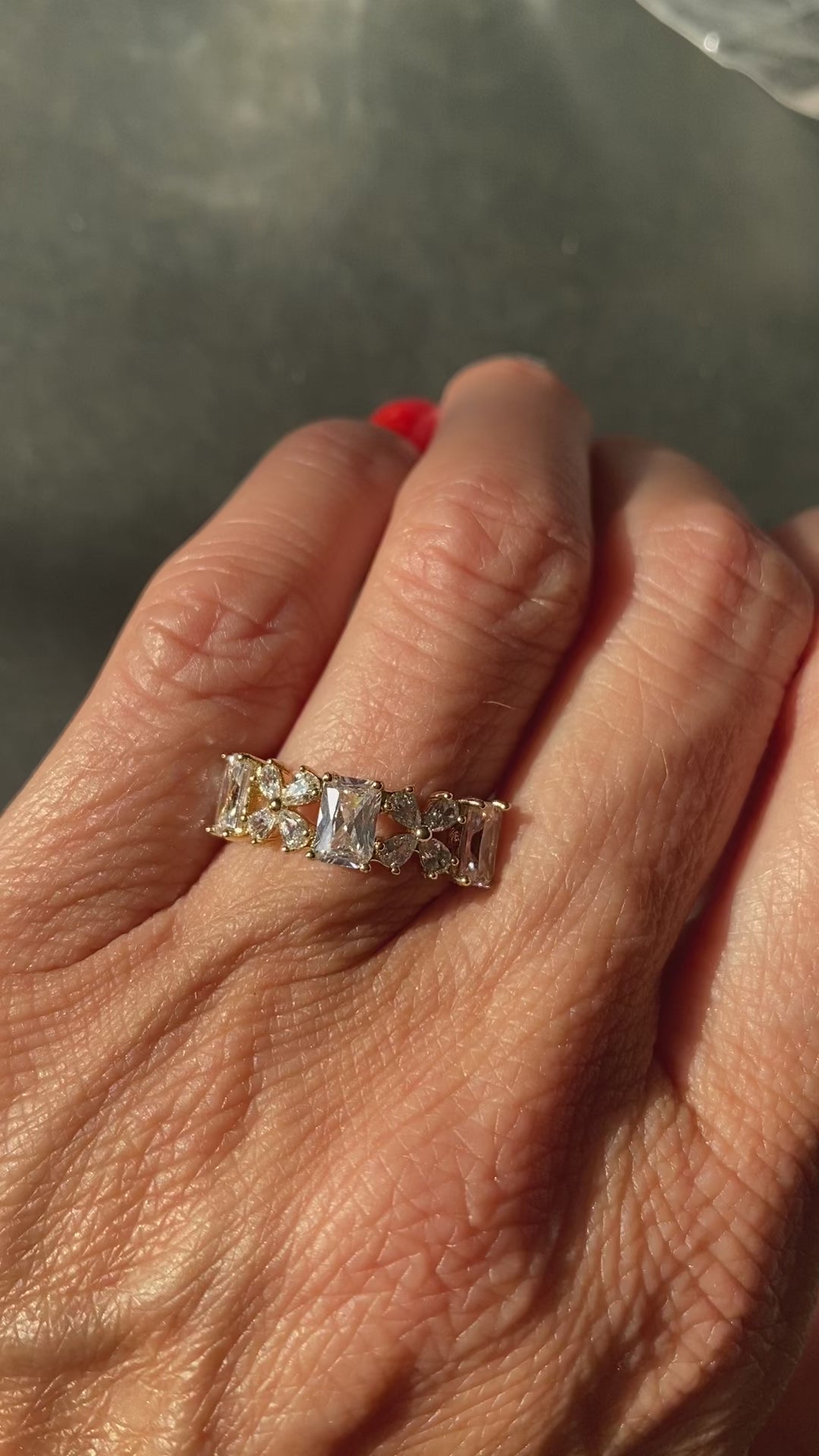 22 ayar mikron altın kaplama ve zirkon baget taşlı yüzük.