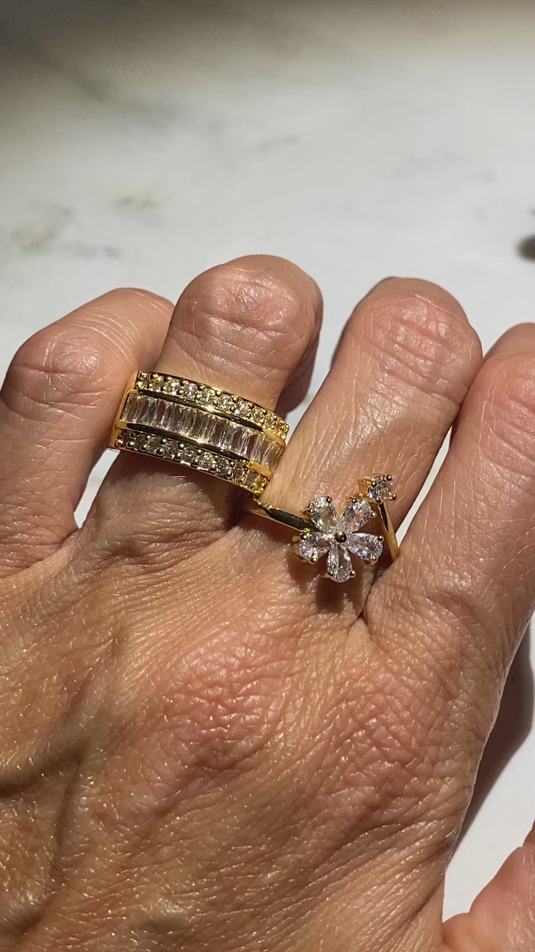 Tam anlamıyla bir gece şıklığı ve parıltısı olsa da,gündüz şık davetlerde de takılabilecek 3 sıralı yüzük.