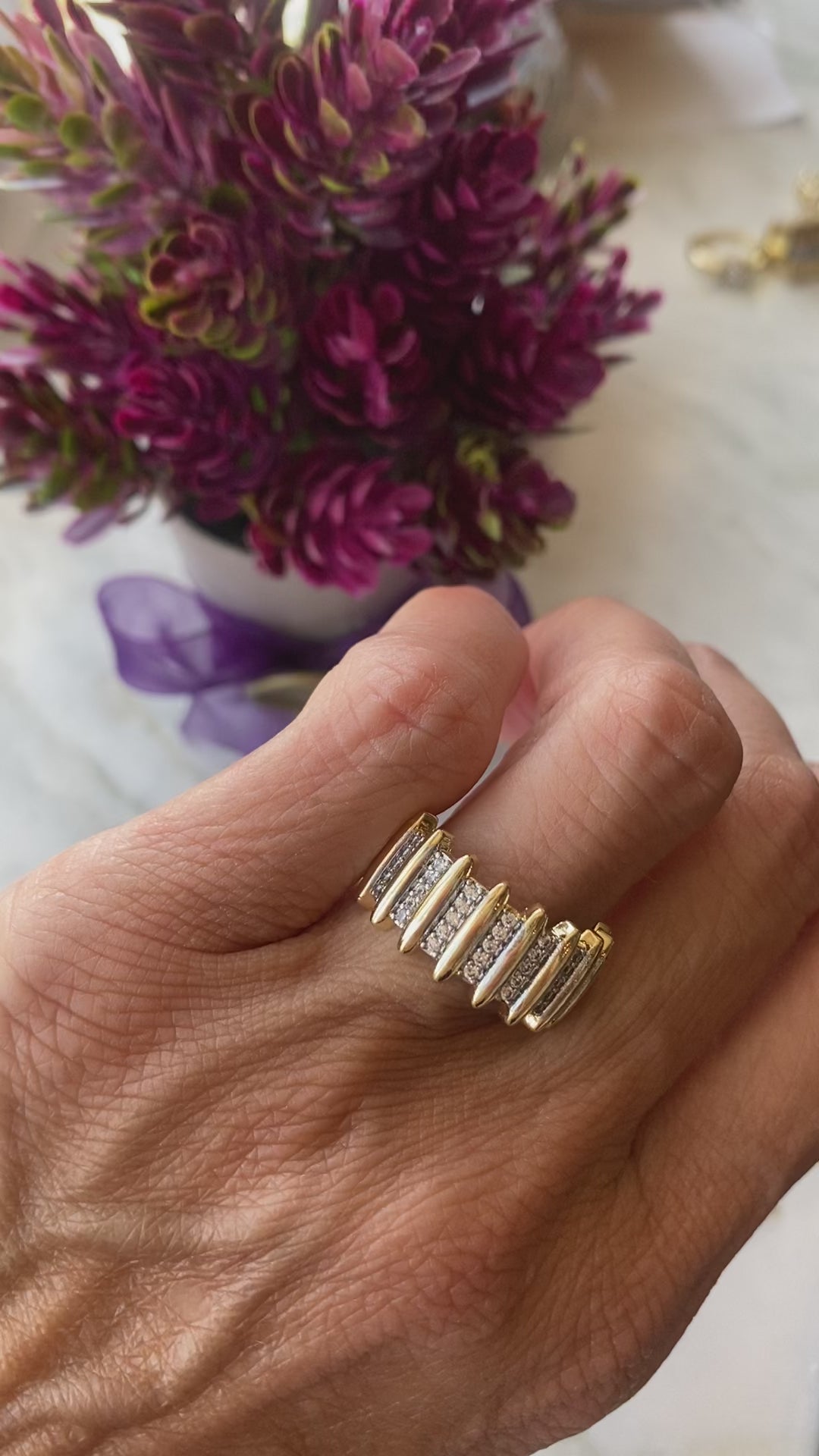 Sıralı pave taşlı,çubuklu yüzük.Ayarlıdır.22 ayar mikron altın kaplama