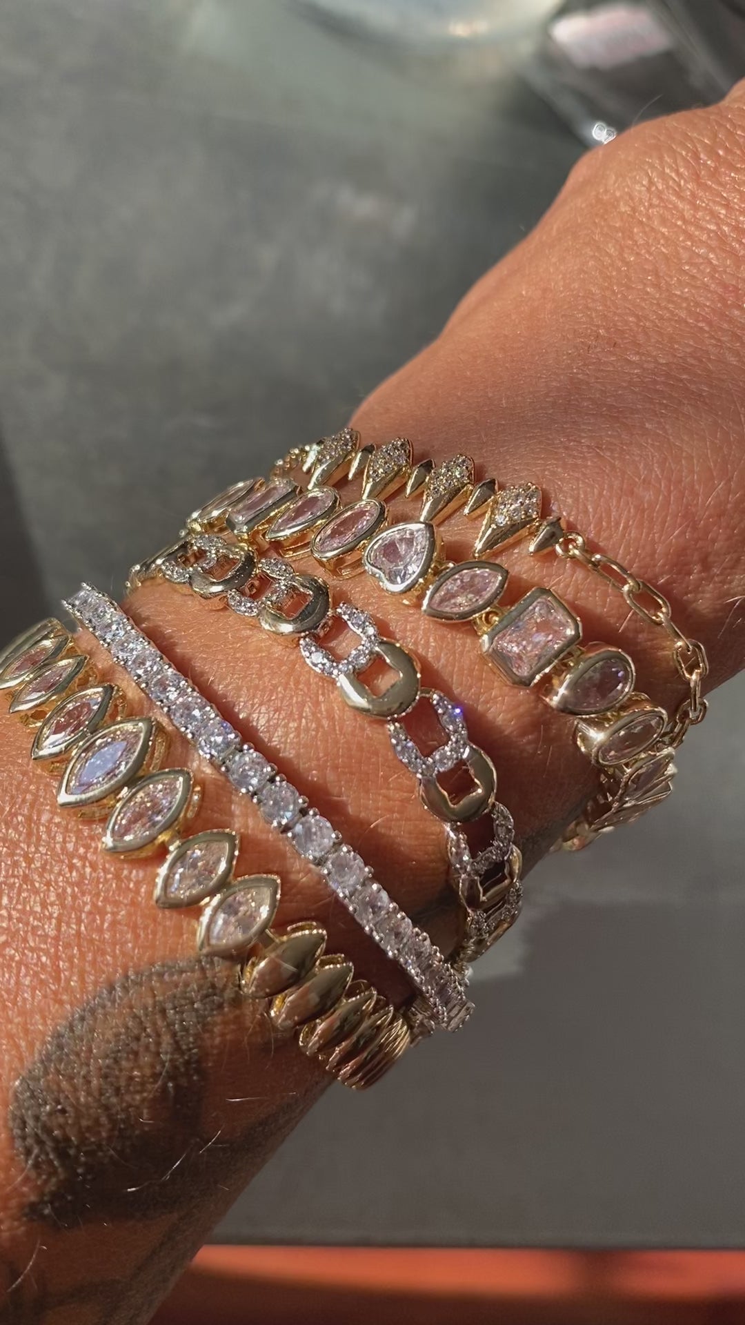 Kare 3,5 mm taşlı,ayarlanabilir klipsli,zirkon taş ve 22 ayar mikron altın kaplamalı suyolu bilezik.