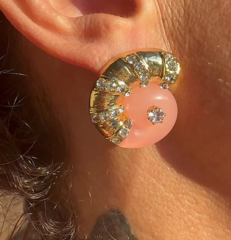 Zirkon taşlı 22 ayar mikron altın kaplamalı salyangoz şeklinde küpe.